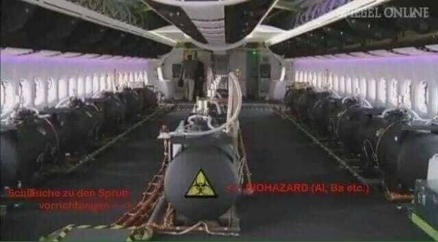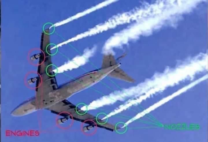 Toberas independientes a los motores son las que sueltan las estelas. Esto es, las alas tienen depósitos específicos e independientes de los del queroseno.
