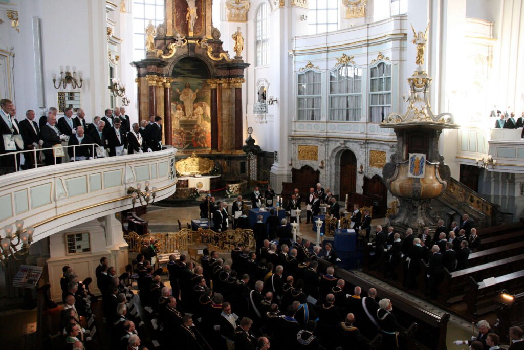«1700 masones (…) entraron en la iglesia de San Miguel de Hamburgo. (…) La parroquia luterana accedió generosamente a la petición de las logias de Hamburgo de celebrar su ceremonia ritual en conmemoración de la fundación de la logia masónica alemana más antigua (…) en la iglesia principal de la ciudad.