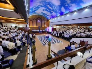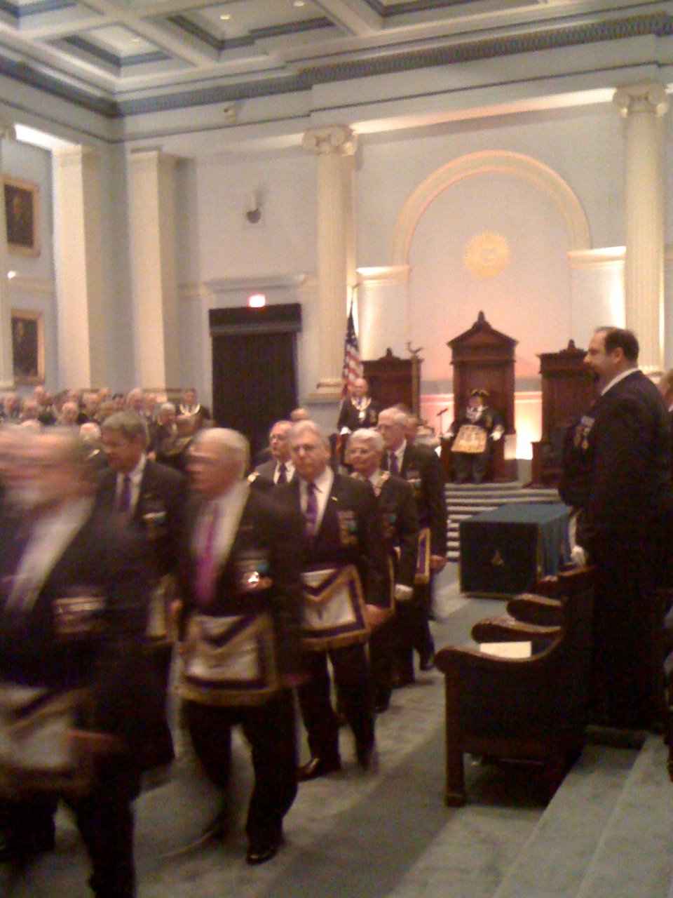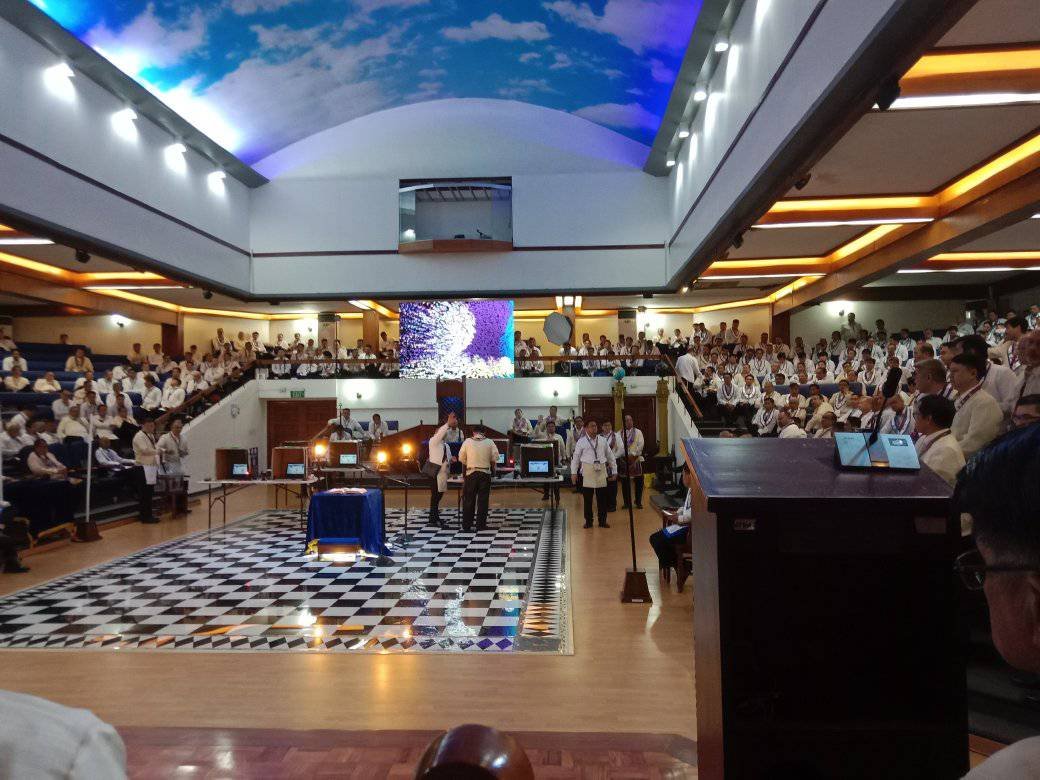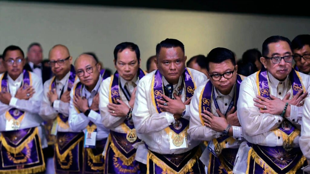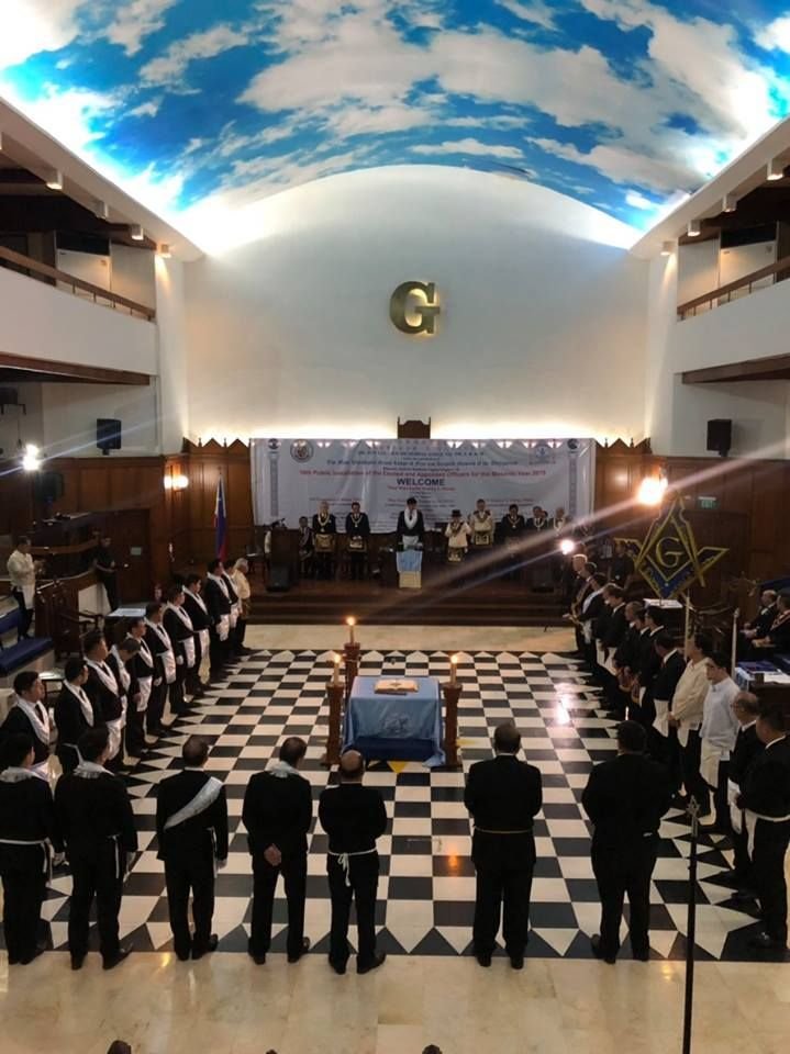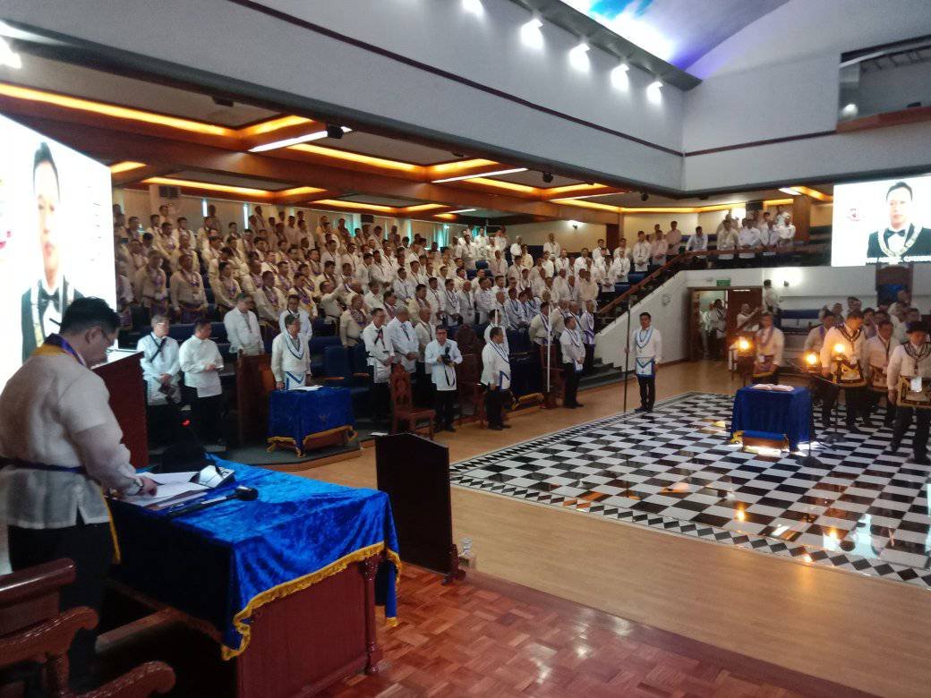 El siguiente ejemplo es del centro de convenciones «World Trade Center Metro Manila, in Pasay City». Se trata de una ceremonia de Instalación (reemplazo del Gran Maestre de la Gran Logia de Filipinas) del 107 ° Gran Maestre de Masones en la Jurisdicción de Filipinas, en abril de 2025, con concierto nocturno al aire libre. Normalmente tras la reuniones más o menos solemnes, grandes y pequeñas, suelen acabar en cena y celebración.