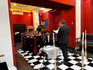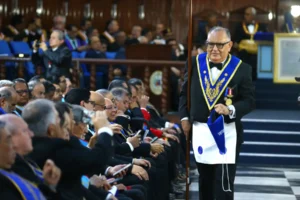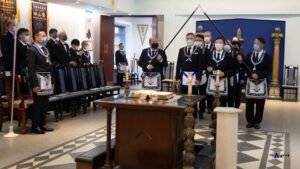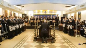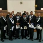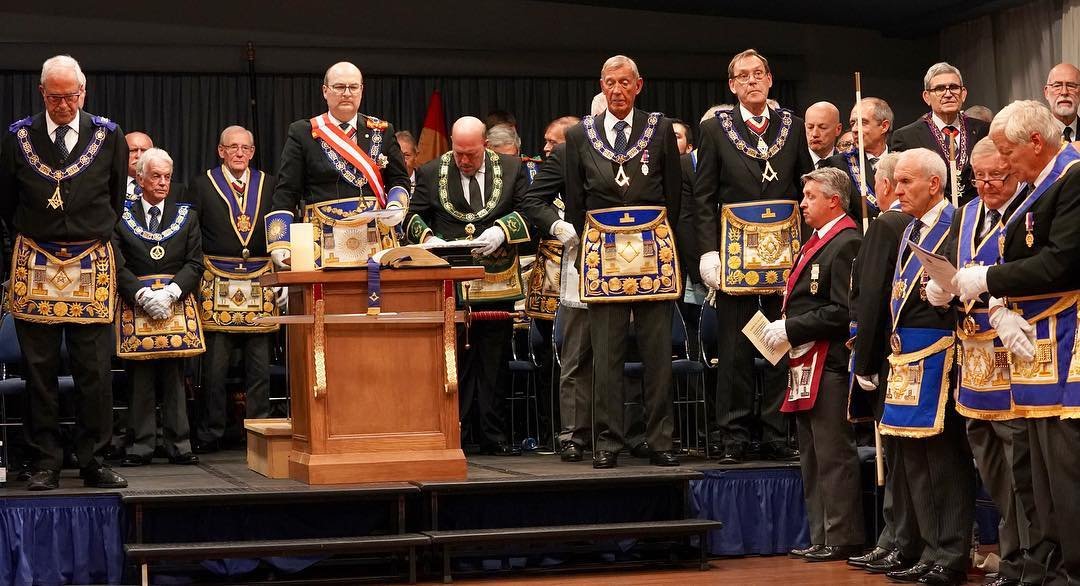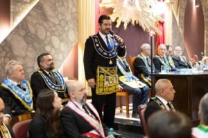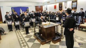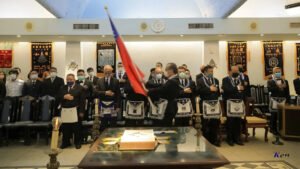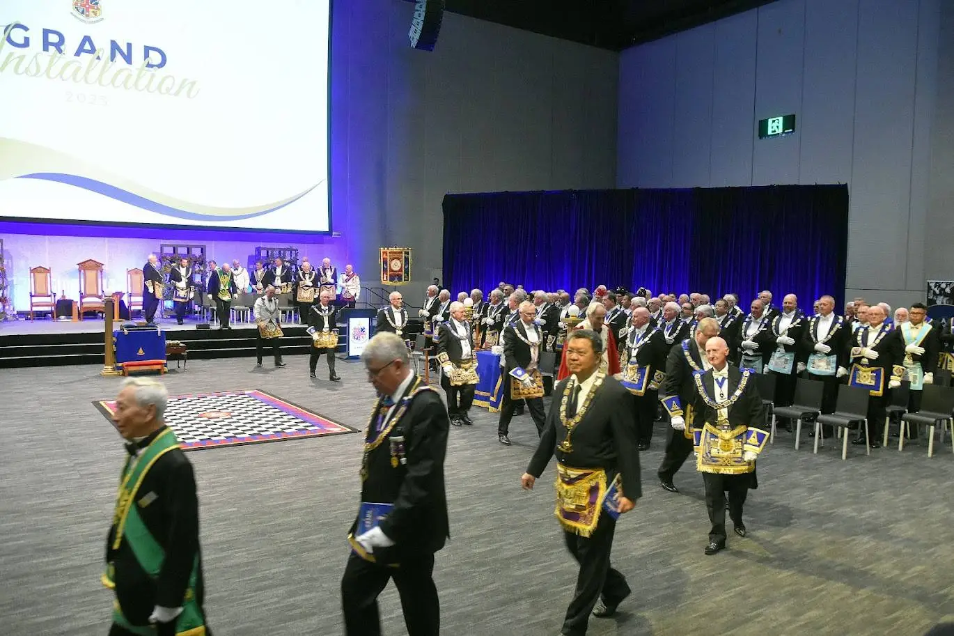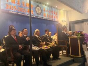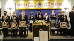 Desde Taiwan (copia, copia), nos muestran a los representantes de la Gran Logia de China visitando la ceremonia de Instalación del Gran Maestre de la Gran Logia Unida de Victoria (Australia), el 26 de marzo de 2023.