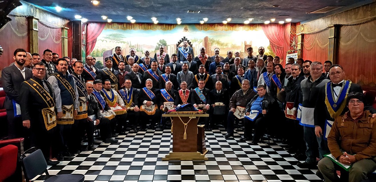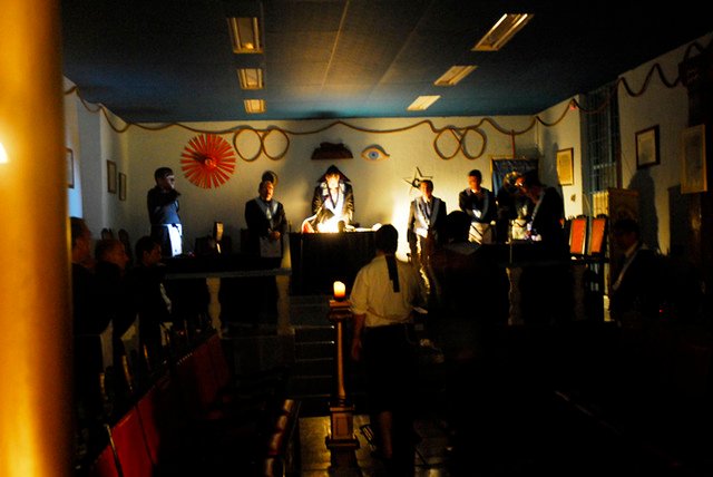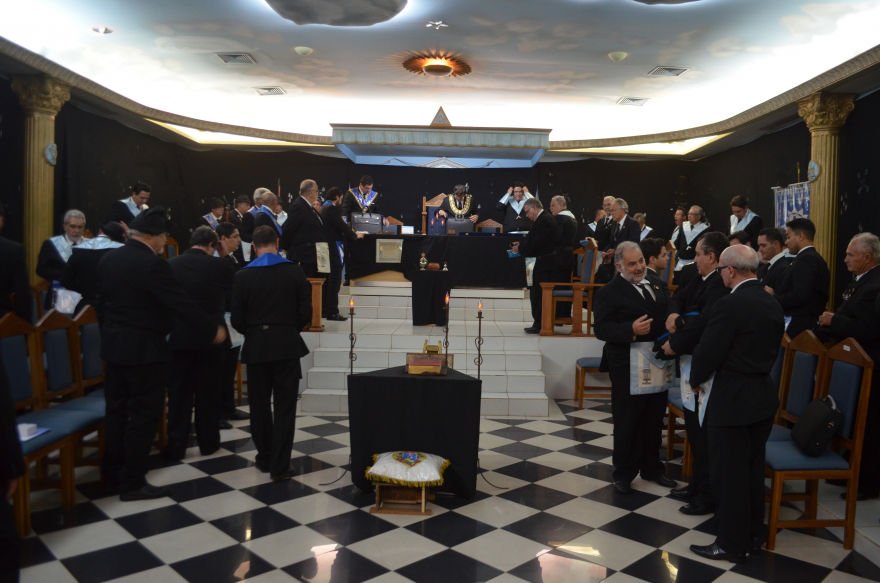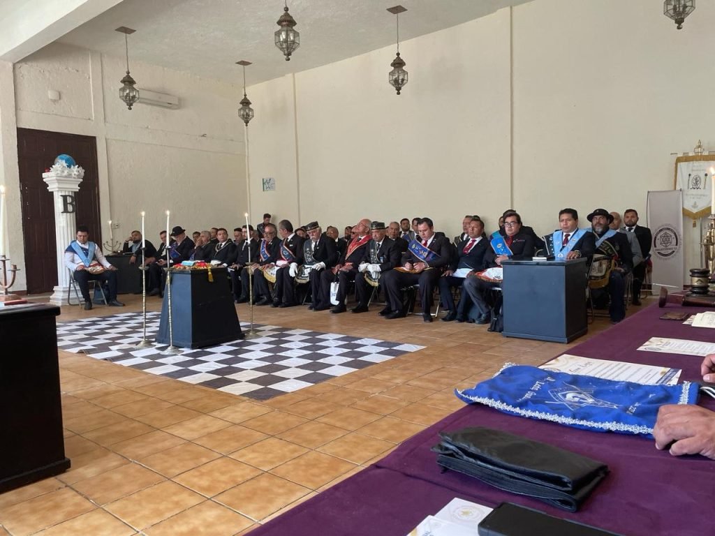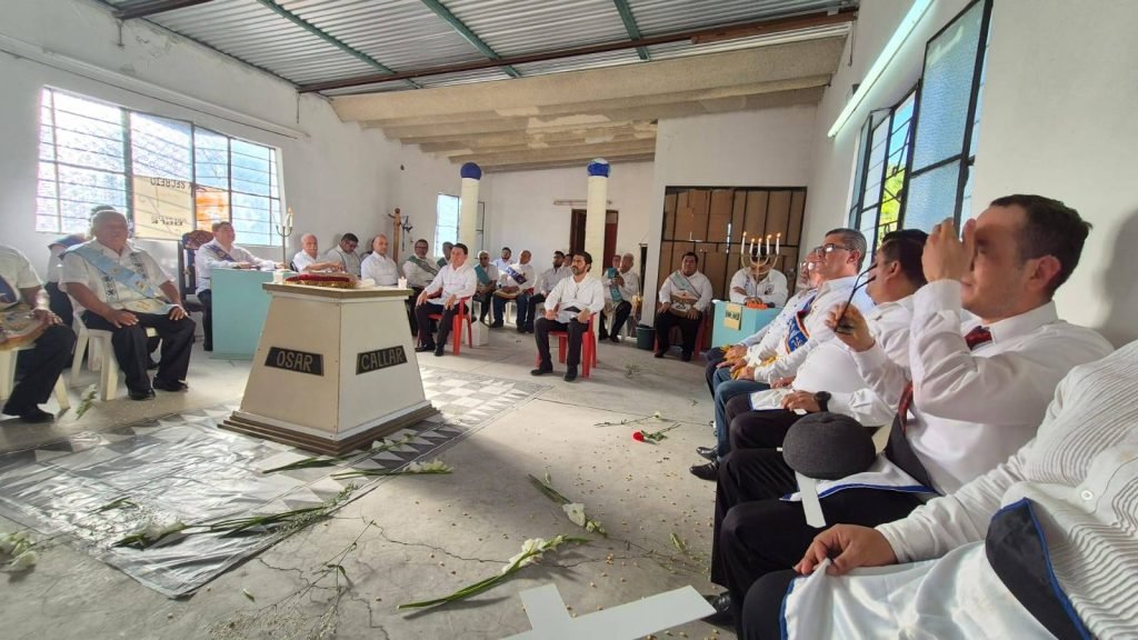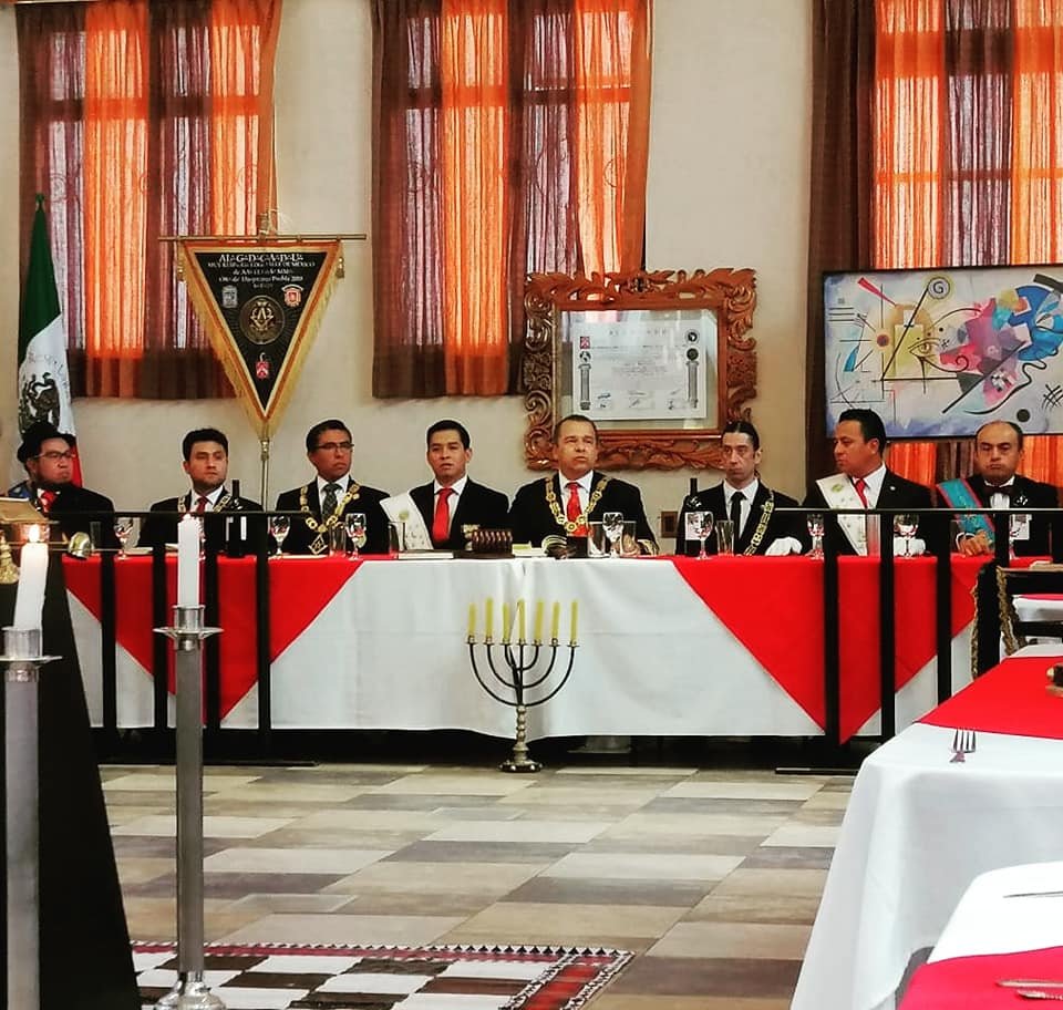 Nota: En las siguientes imágenes que verán del interior de las logias comprueben si ven alguna menorá o palabra del alfabeto hebreo decorando la sala