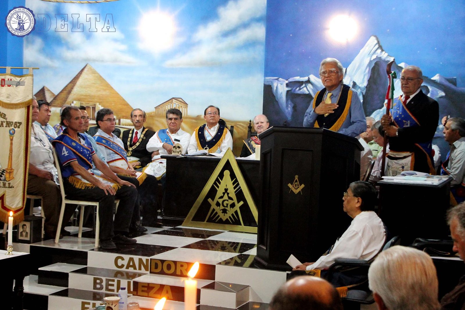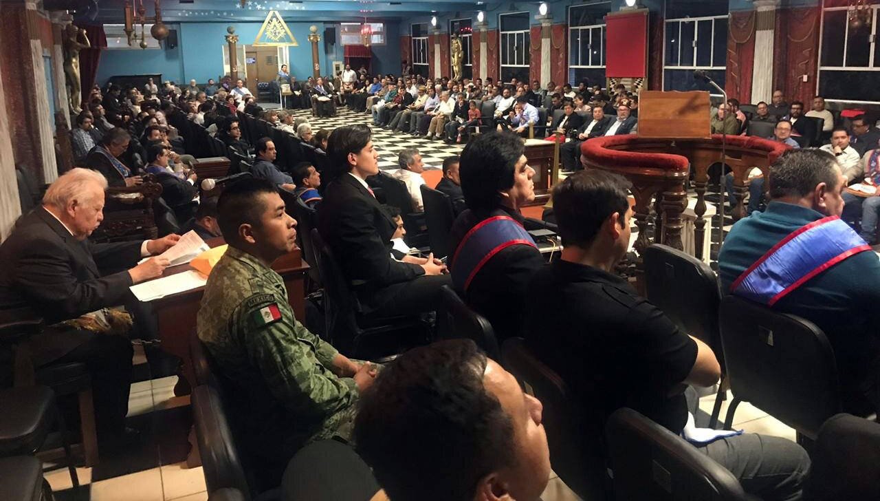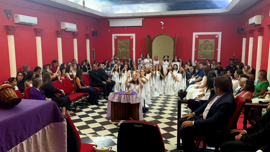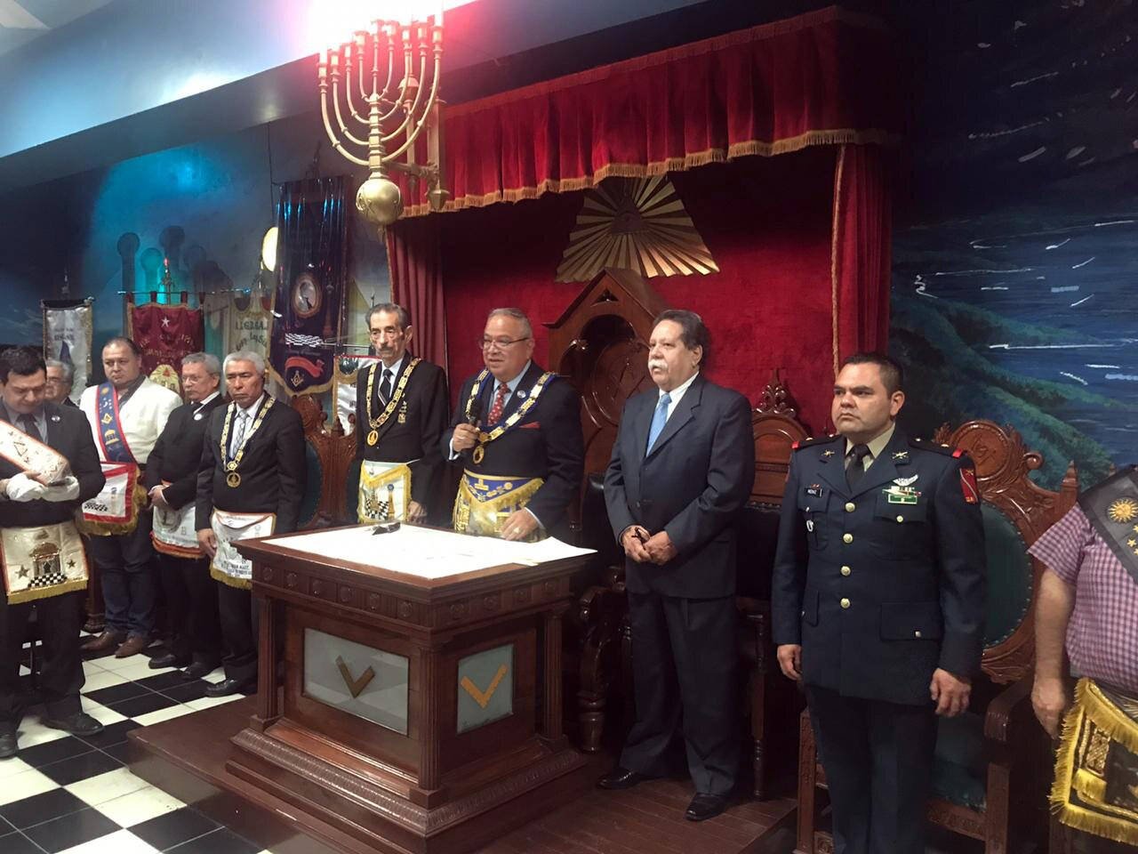Nota: En las siguientes imágenes que verán del interior de las logias comprueben si ven alguna menorá o palabra del alfabeto hebreo decorando la sala