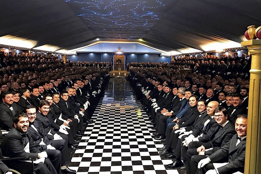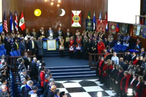 - A la izquierda vídeo de la Gran Logia de Chile. Tenida blanca (es decir, pública y visible) de 2025. (Youtube).