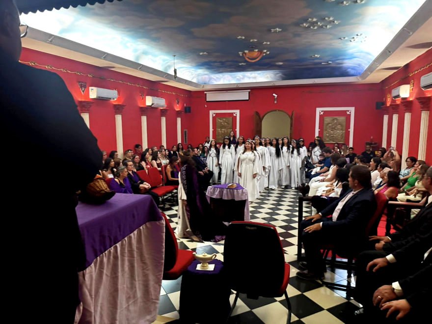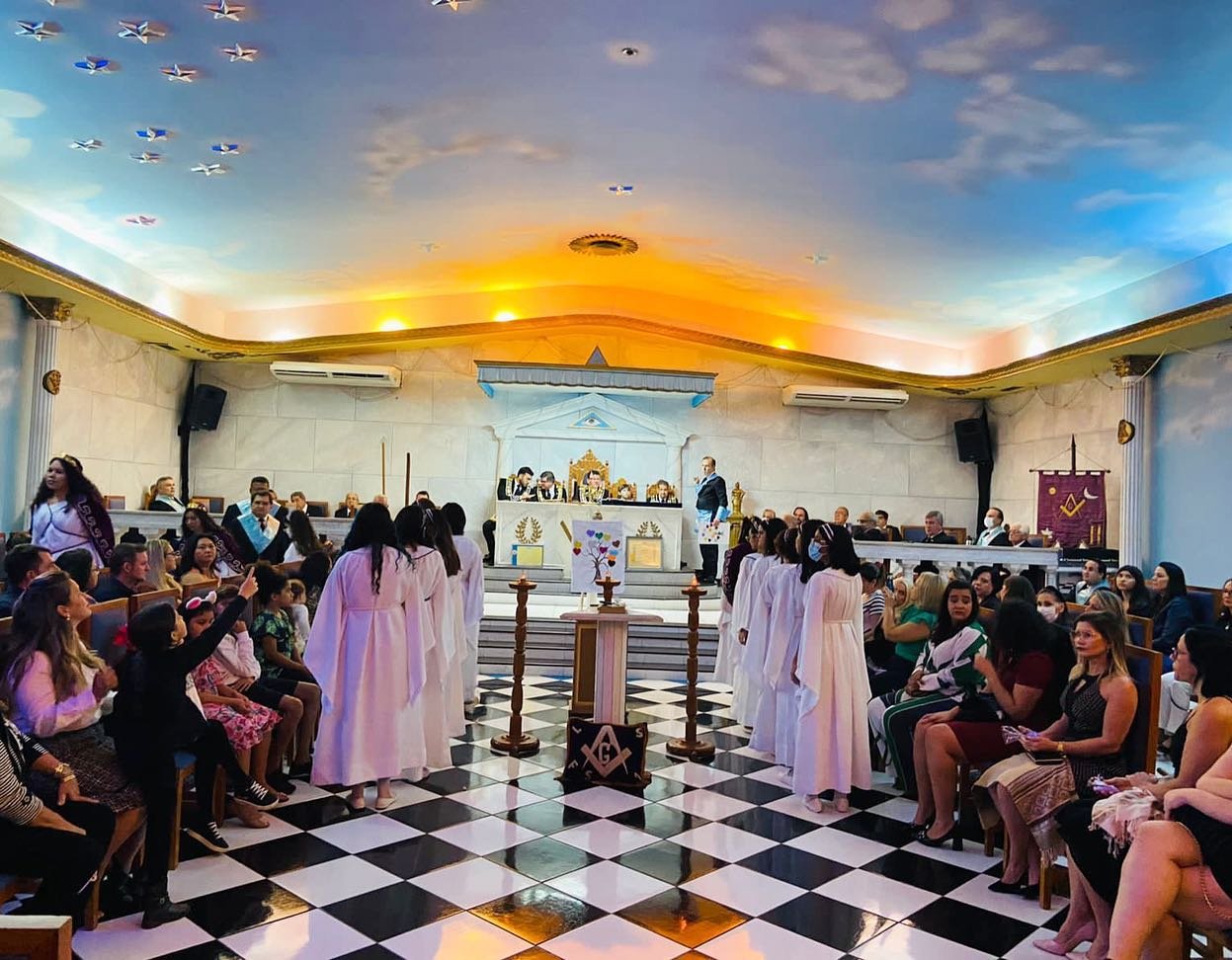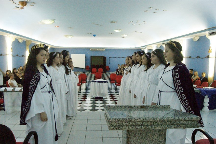 A continuación y como ejemplo, una tenida titulada Congreso Estatal de las Hijas de Job, en una pequeña logia del Estado de Mato Grosso, Brasil.