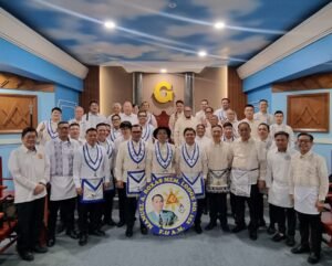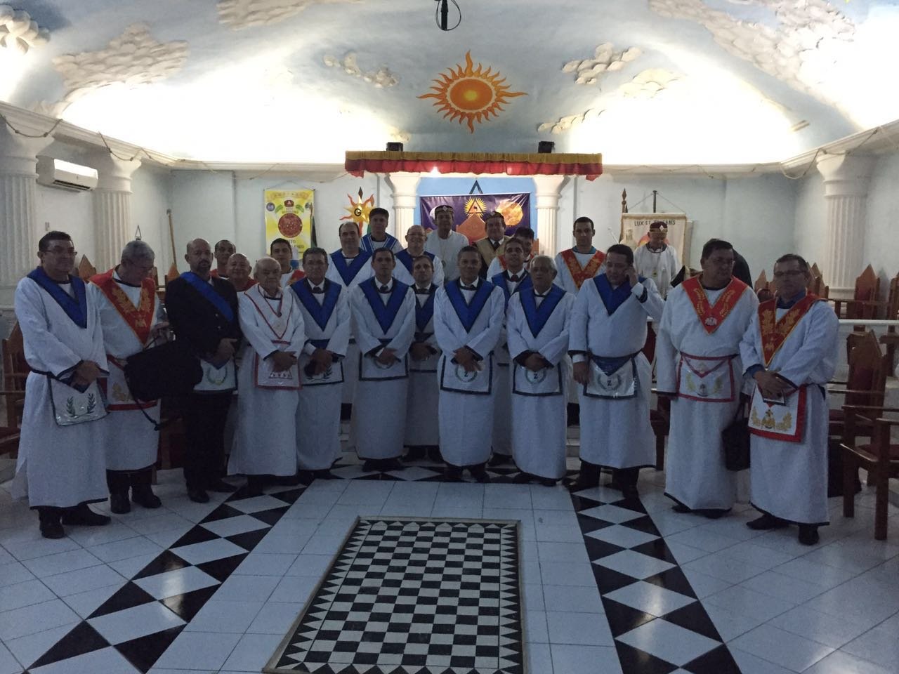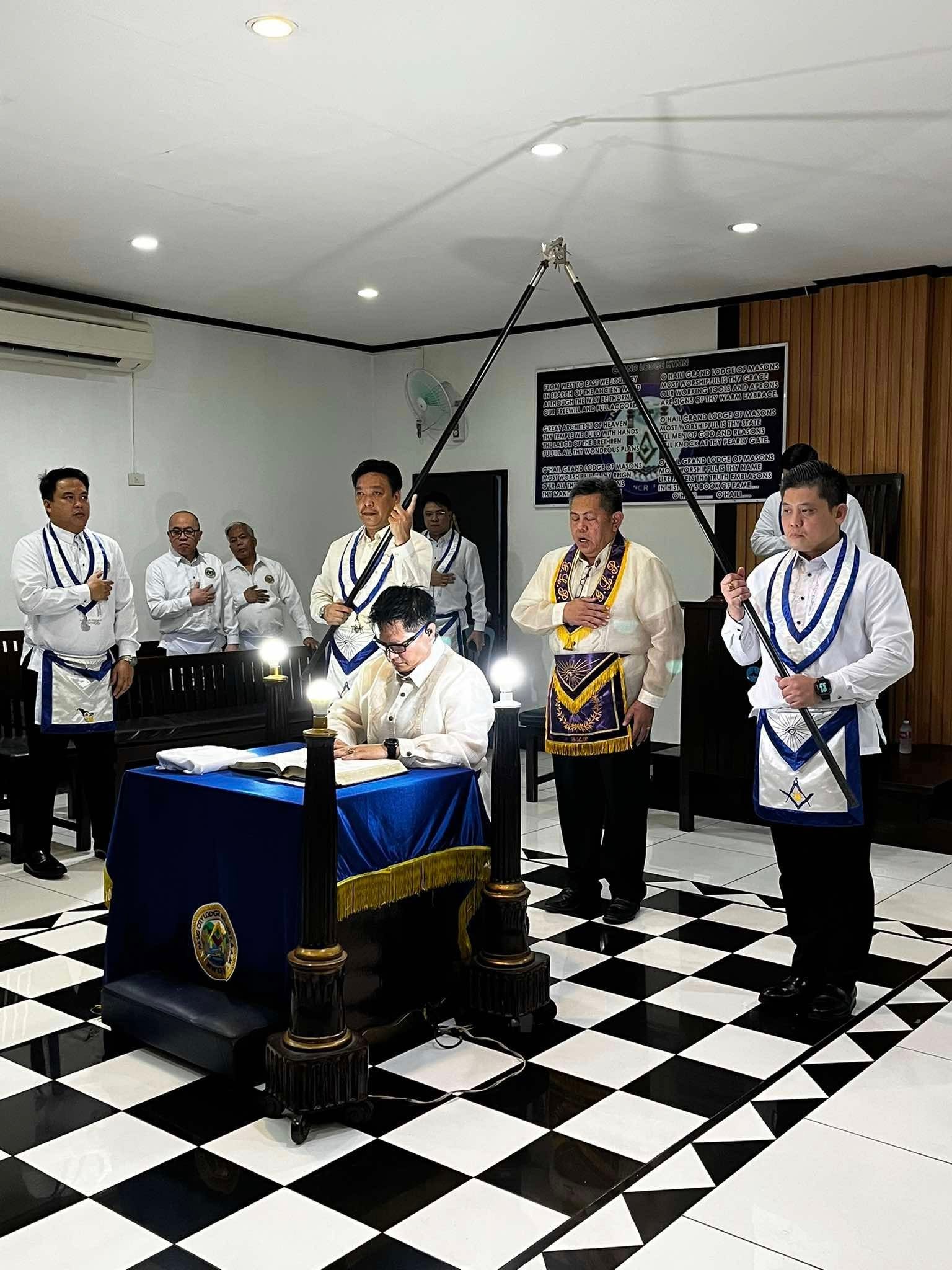 El siguiente ejemplo es una ceremonia privada (sin familiares y amistades no masones invitados, pero sigue siendo una tenida blanca. Es decir, que se puede mostar en imágenes) en la ciudad filipina de Dumaguete, de 95.000 habitantes. Ceremonia de dos días donde el día anterior, 27 abril de 2023, recibieron delegaciones de otras Grandes Logias extrajeras: Grand Lodge of Japan, Grand Master of the Grand Lodge of New South Wales, Grand lodge of Victoria, Grand lodge of Alberta, Grand lodge of Manitoba, Grand lodge of Nevada, Grand lodge of Hawaii, Grand lodge of Italy y Grand lodge of British Columbia.