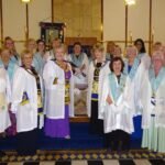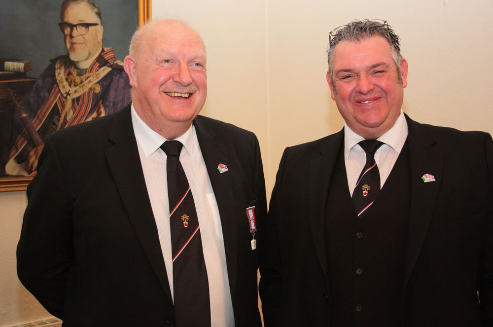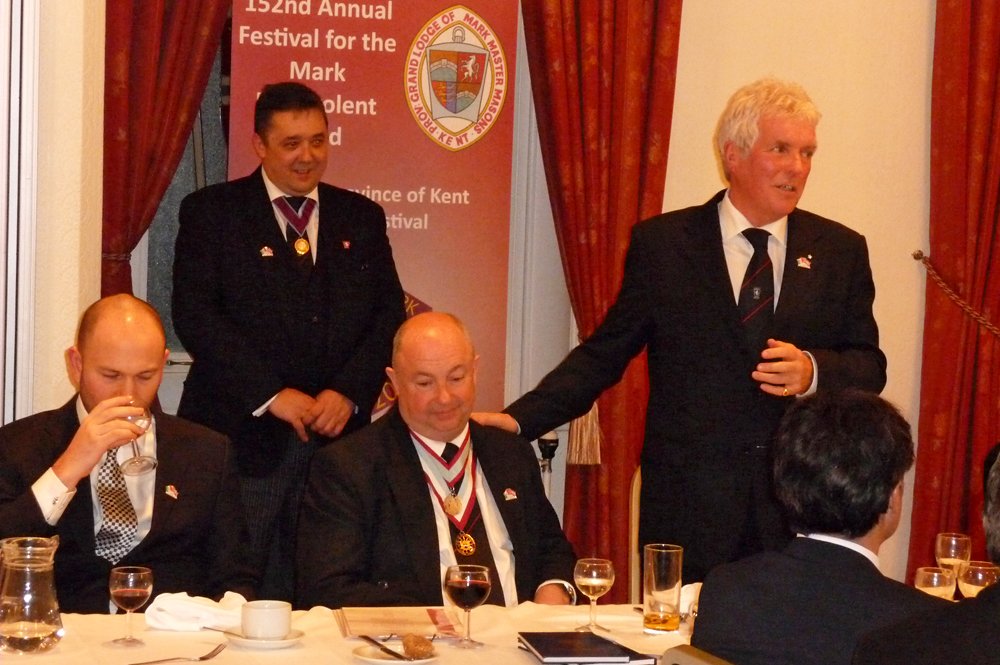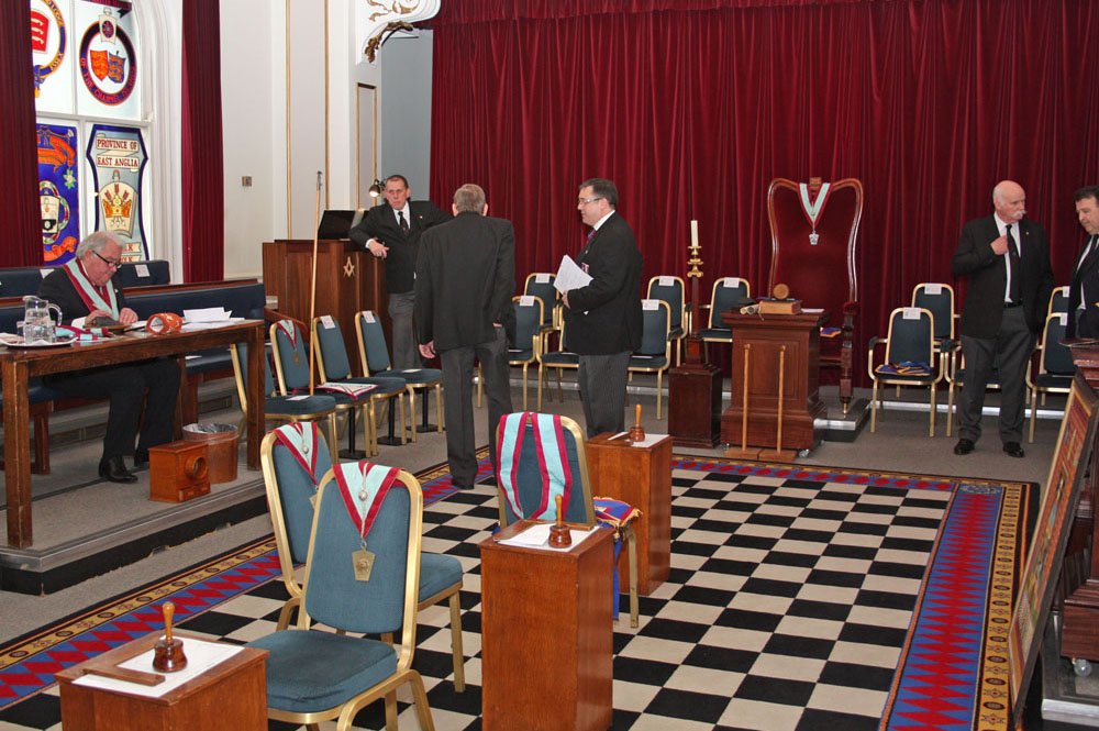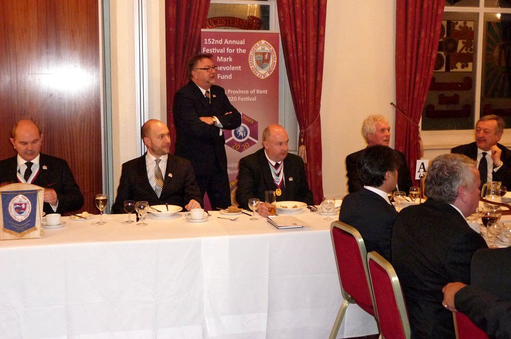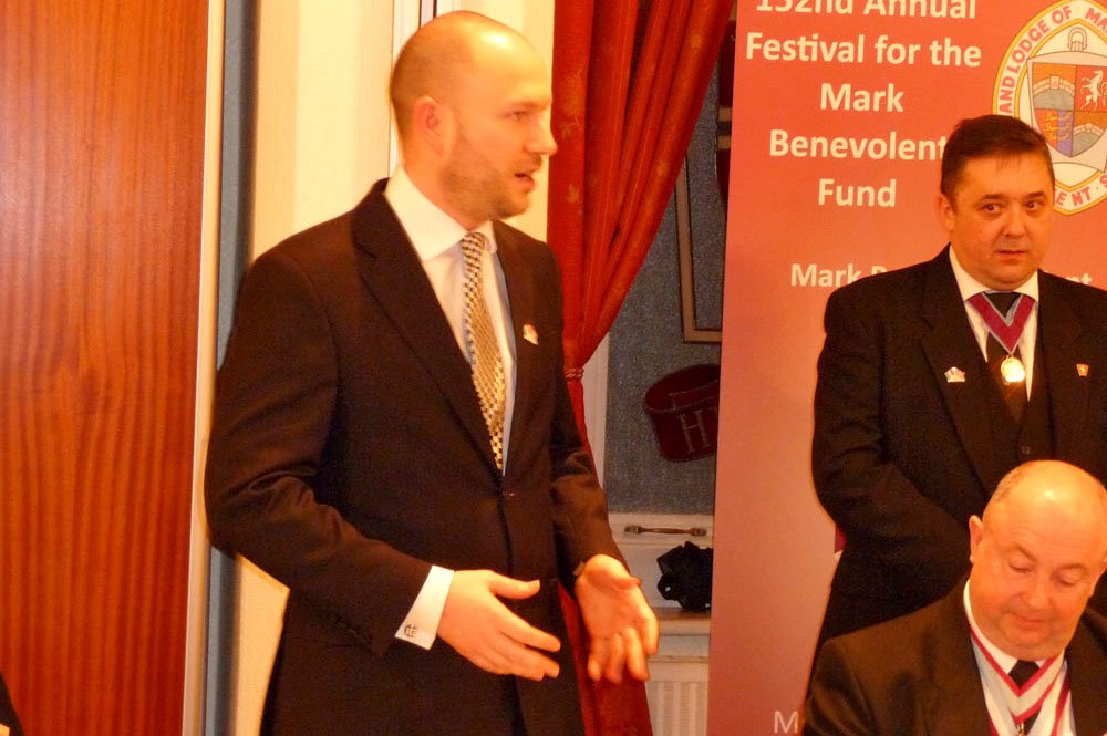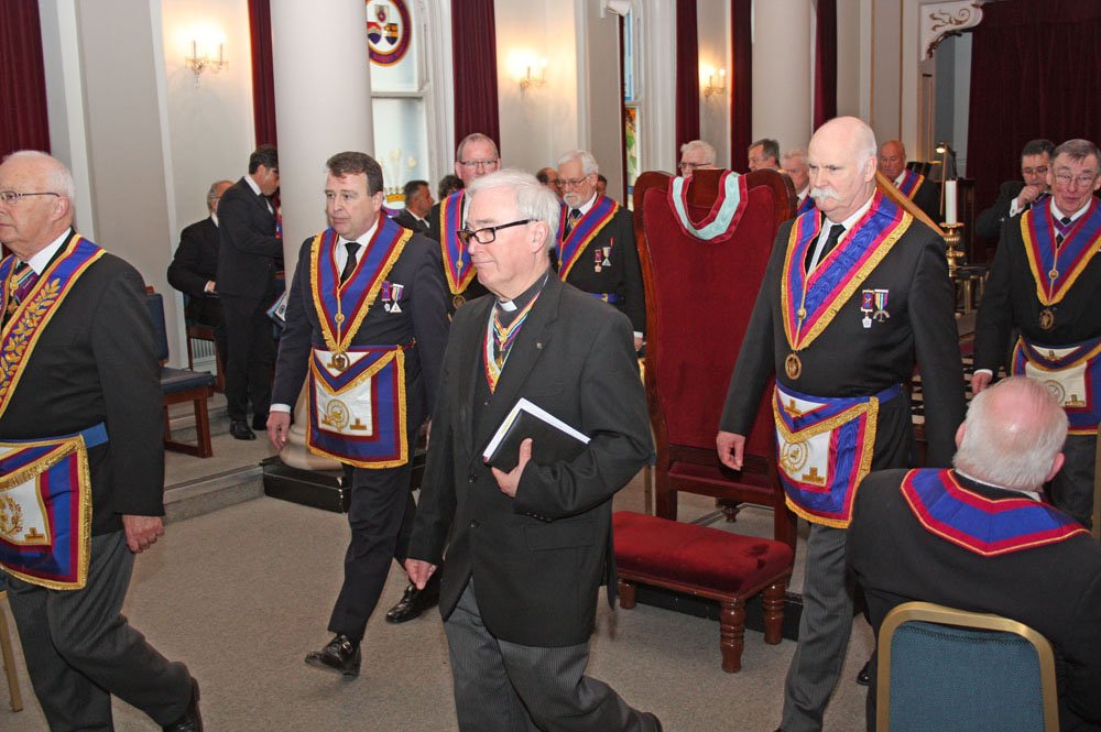 El siguiente ejemplo es de una logia del condado de Kent (www.kentmarkmastermasons.org.uk), Inglaterra. La Iglesia británica sucumbió en manos de la masonería en el siglo XVI, de la mano del judaizado hereje Martín Lutero. En las imágenes verán a un masón vestido con alzacuellos. Y desde la muerte del último Papa legítimo, el Papa Pío XII en 1958, la Iglesia Católica por infiltración está en la misma situación, en manos de sus enemigos.