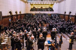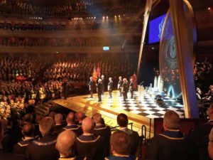 La siguiente celebración de 2017 fue presidida por el Gran Maestre el Duque de Kent, y el recionto pudo acoger a poco más de 4000 masones de 136 Grandes Logias. Una Gran Logia (o Gran Oriente) es una logia independiente que coordina a las demás logias del país, éstas reunidas y organizadas en forma de federación.