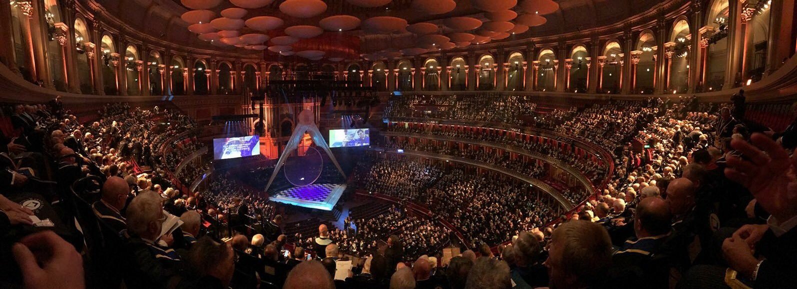 La siguiente tenida es de la Gran Logia femenina de Inglaterra en el Royal Alber Hall de Londres.