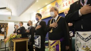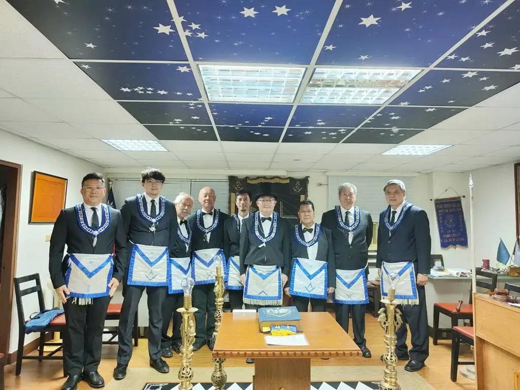 Desde la misma web de Taiwan es interesante la siguiente Instalación en la Logia Han No.8 y en la Logia Tang No.9. Usan mucho el Signo de Fidelidad masónica como expresión de obediencia a algo sentido y amado, la familia que conforman. La otra observación es que el cubo central, que habilitan como mesa, es el altar del templo masónico y es ahí donde se arrodillan.