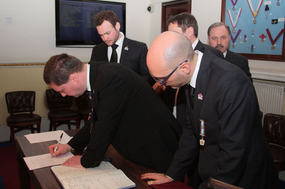 Cuando tienen alguna tenida (reunión masónica o ceremonia), al final de ésta, suelen hacer algún retrato de grupo. Y normalmente también tras la tenida suelen acabar en una cena de celebración.